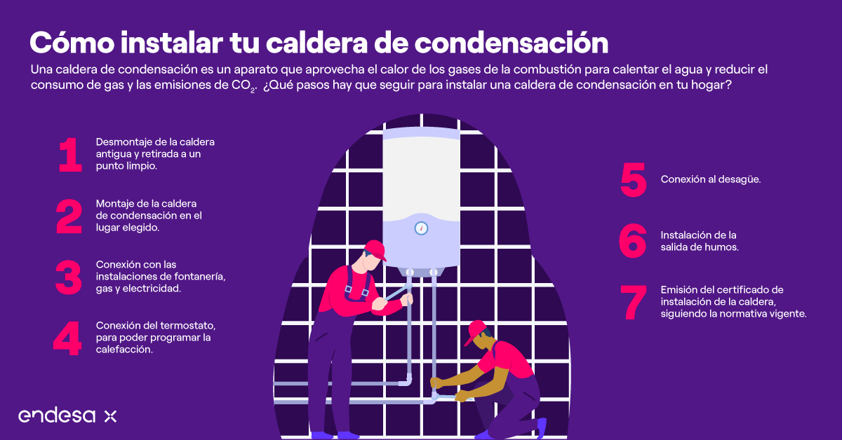 La instalación de una caldera de condensación implica los siguientes procesos: